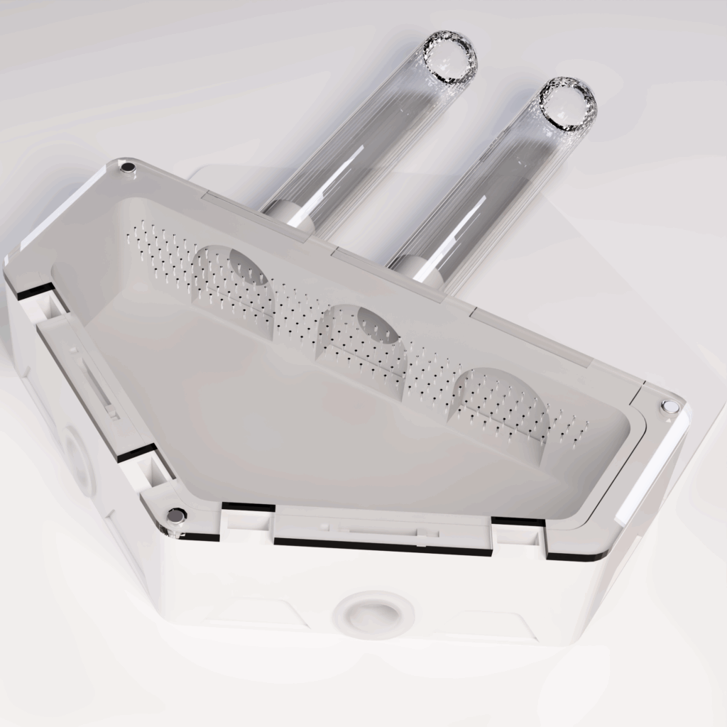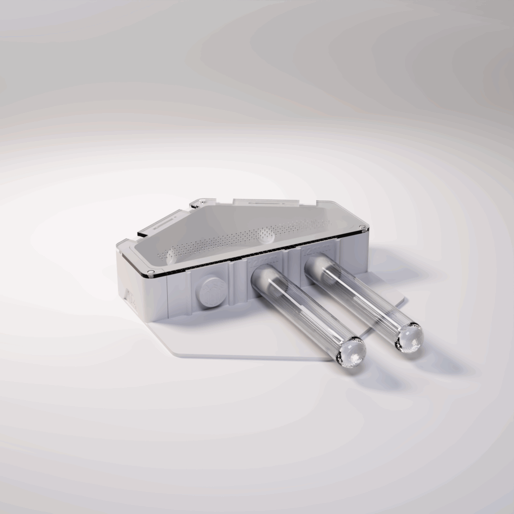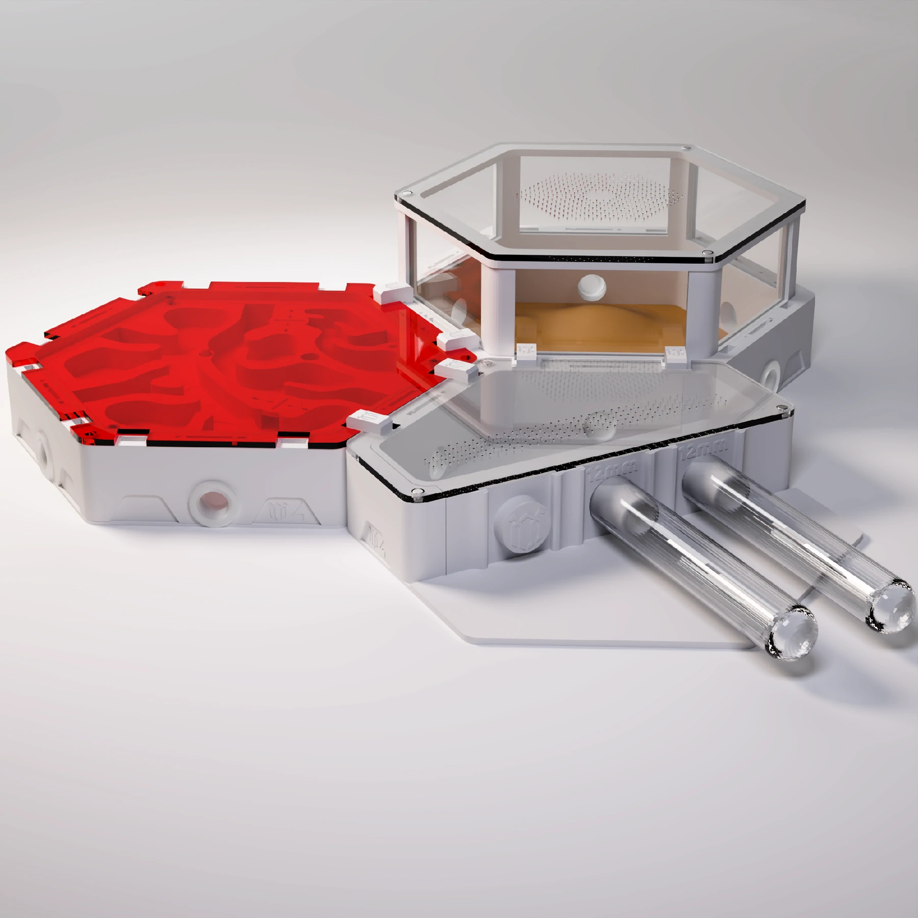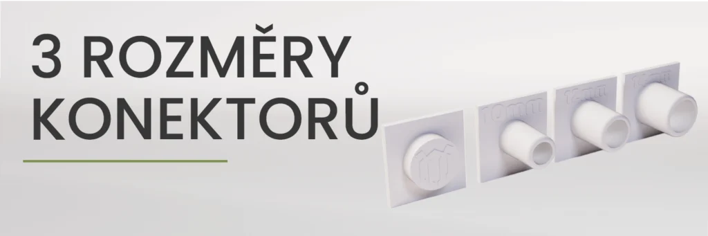 V praxi lze mít připojenou 1 zkumavku a zbylé dva porty uzavřít, nebo využít rovnou 3 zkumavky a nabídnout kolonii více prostoru od začátku. Součástí balení jsou kompatibilní konektory ve velikostech 10 mm, 12 mm a 14 mm (3 kusy od každé velikosti), díky čemuž modul spolehlivě funguje s většinou běžně používaných zkumavek.