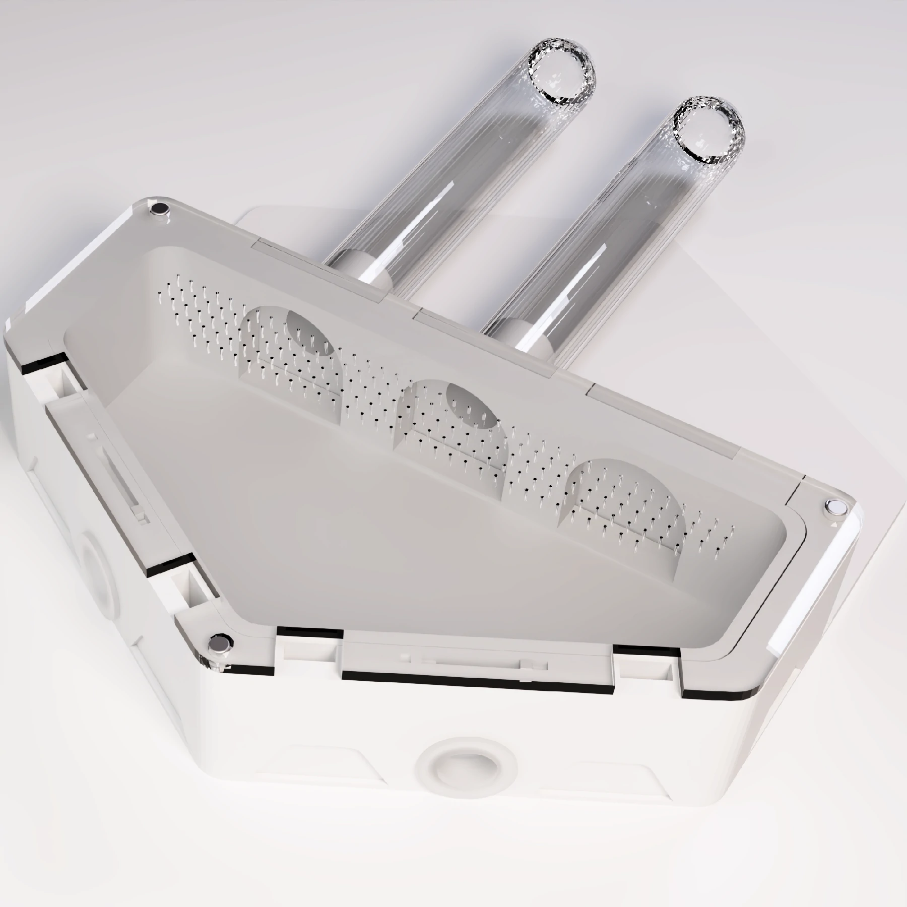 Inkubátor je plně modulární a umožňuje snadné přizpůsobení podle aktuálních potřeb chovu. Modul obsahuje 3 porty, do kterých lze vložit konektory nebo je bezpečně uzavřít pomocí záslepek.